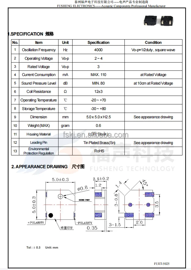 FUET:Acoustic vibration is produced by alternating current or voltage, which implies buzzer’s power input has to be alternating current, which serves as audio signal as well. For passive type, clients power them with AC audio signal generated by external audio modules or oscillators; For active type, since they have built-in oscillator with fixed frequency, clients power them with DC power source. The DC source is later processed into AC audio signal by transducers’ built-in circuits.Thus, if clients provide AC audio signal, then we recommend passive type; if clients provide DC power source, then we recommend active type.