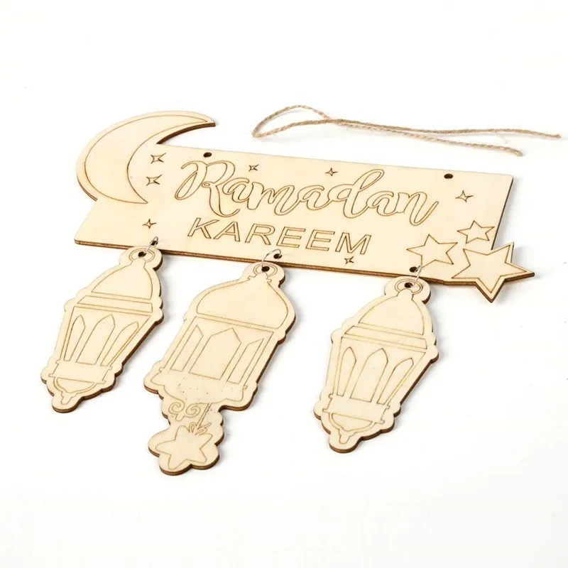 Hanging Lantern Pendant Plaque Sign Ornament DIY Wall Decor Party Supplies Eid Mubarak Muslim Islam Ramadan Decorations | ||