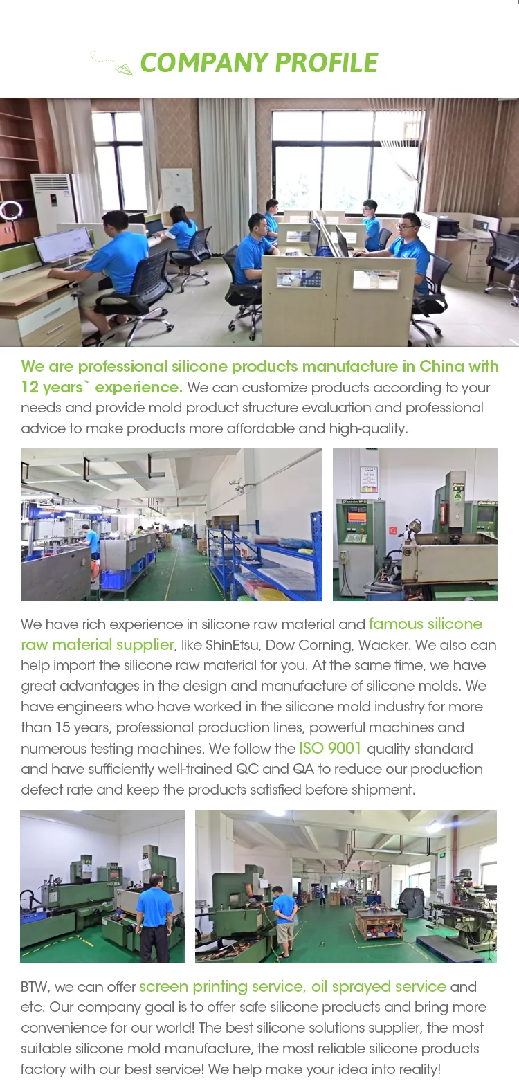 1. 12 years` experience of silicone factory MANAGEMENT, professional cost analysis and service;
