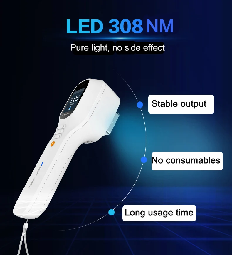 Handheld UVB therapy cold laser therapy device LED 308nm excimer laser therapy for vitiligo psoriasis