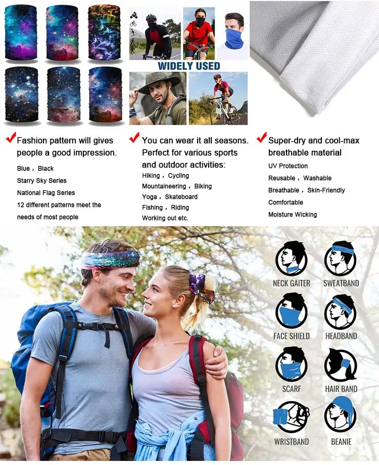 Function: | Neck Gaiter FEATURE Super soft face cover Unisex Neck Gaiter for Outdoor Sport,Commute,Hiking,Running,Fishing The neck gaiter has a strong defense force which keep you warm in the winter and protect you from sun in the summer. | ||||||