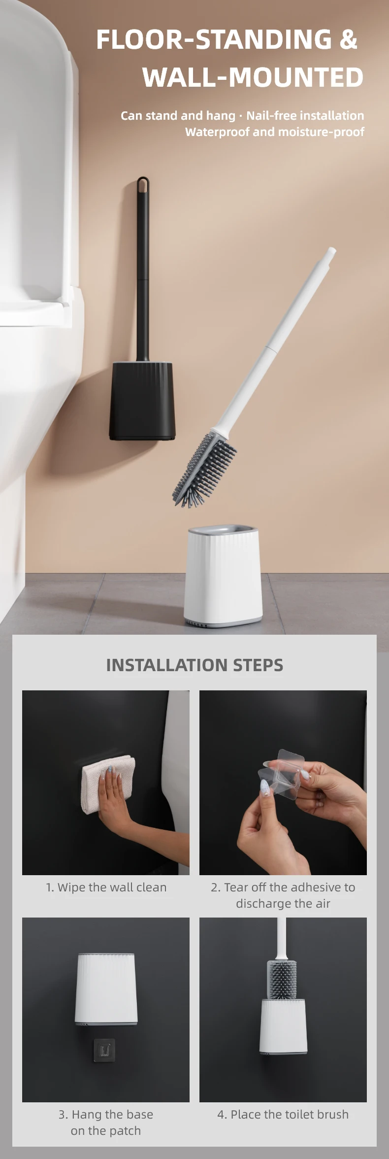 Design: | 3-in-1 silicone toilet brush is more flexible, and the soft head makes it easier to get under the rim, crannies and inside hole of the toilet. In addition, the bristles have anti-stick coating, ensure that dirty thing will not stay on the brush head. Make toilet cleaning more thoroughly and efficient. |