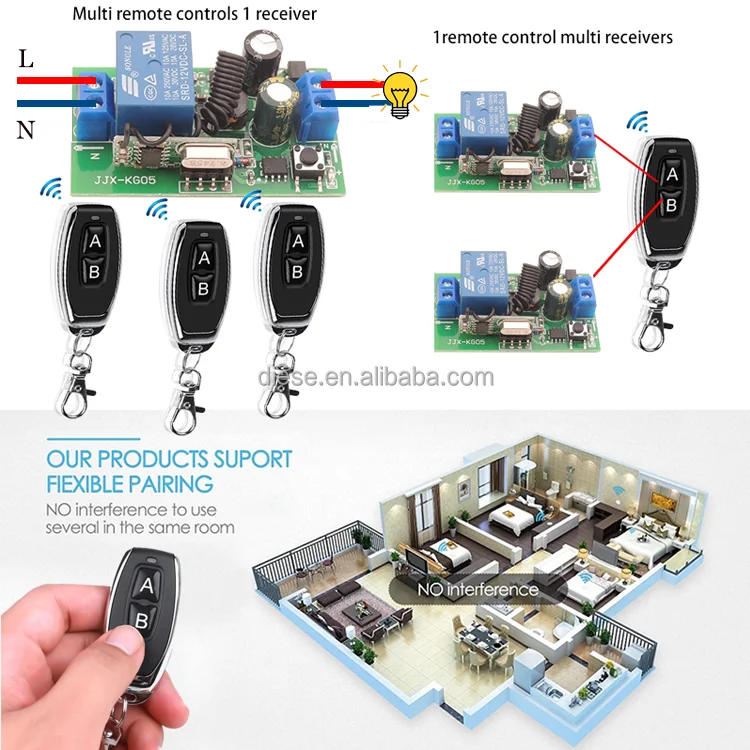 Wireless Remote Control Switch AC 220V 1CH relay 433Mhz Receiver Module For learning code Transmitter Remote