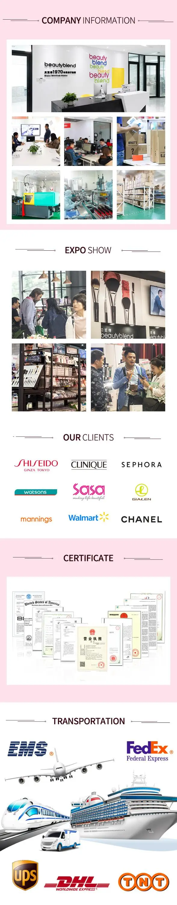 6.Shanghai BLD could supply different kinds of products: (1)Makeup brush / Makeup bag (2)Powder Puff / makeup sponge (3)False Eyelash / Eyelash Curler (4)Cotton Pads / cosmetic cotton (5)Compressed mask
