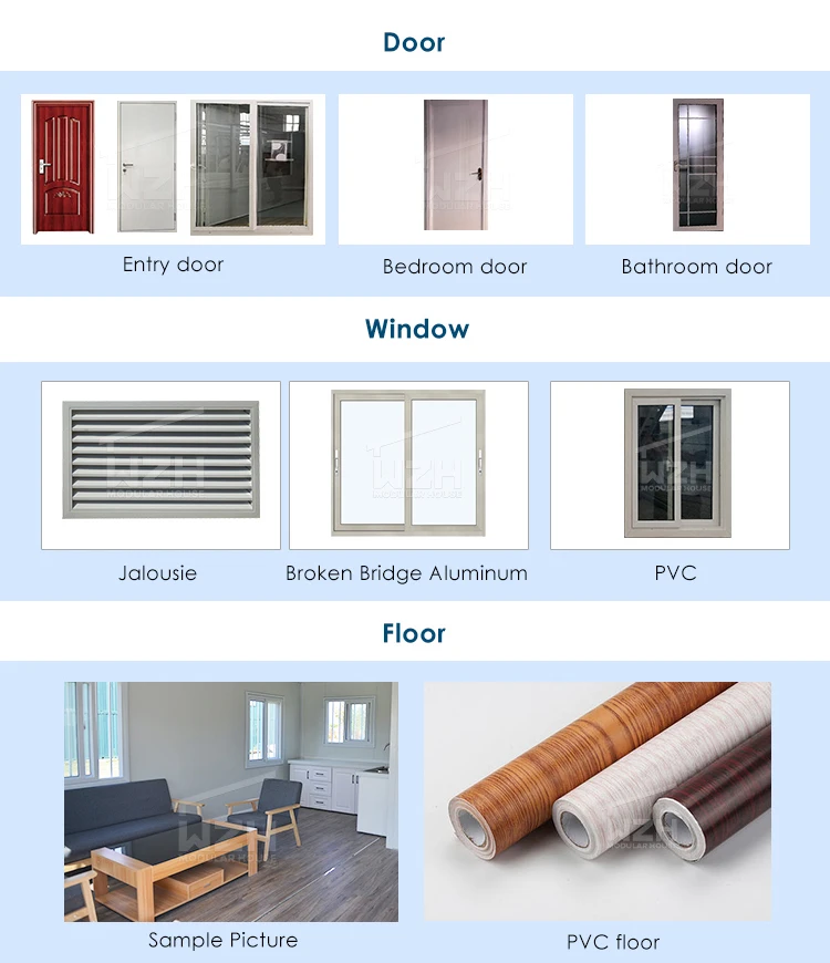 Optional accessories | Furniture,sabnitary,kitchen,A/C,electrical appliance for accomodation,office,dormitory,toliet,kitchen,bathroom,shower,steel roof,cadding panels,decorative material,etc | |