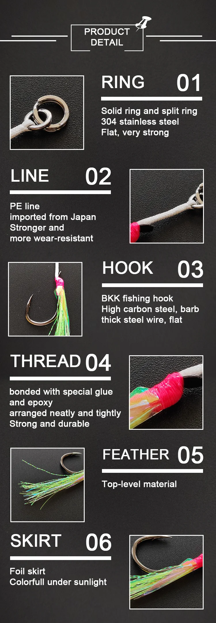 ITEM | SIZE | LINE | LINE LENGTH | UV&LUMO | LINE TENSILE | HOOK TENSILE | MATCH JIG | ONE PACK |