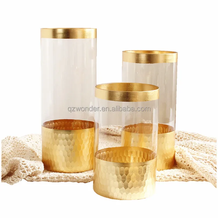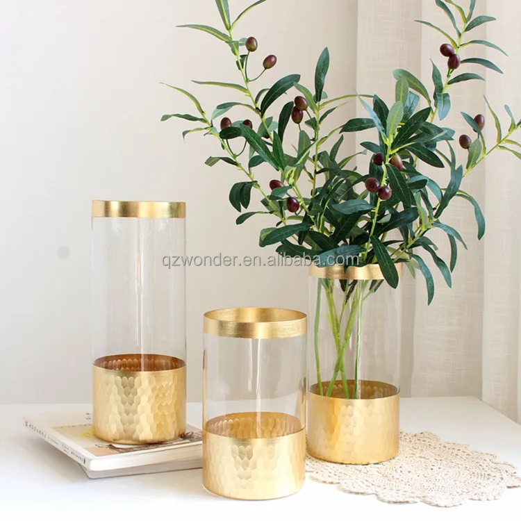 European gold rim hydroponic lucky bamboo vase creative flower arrangement vase home decoration straight tube glass vase