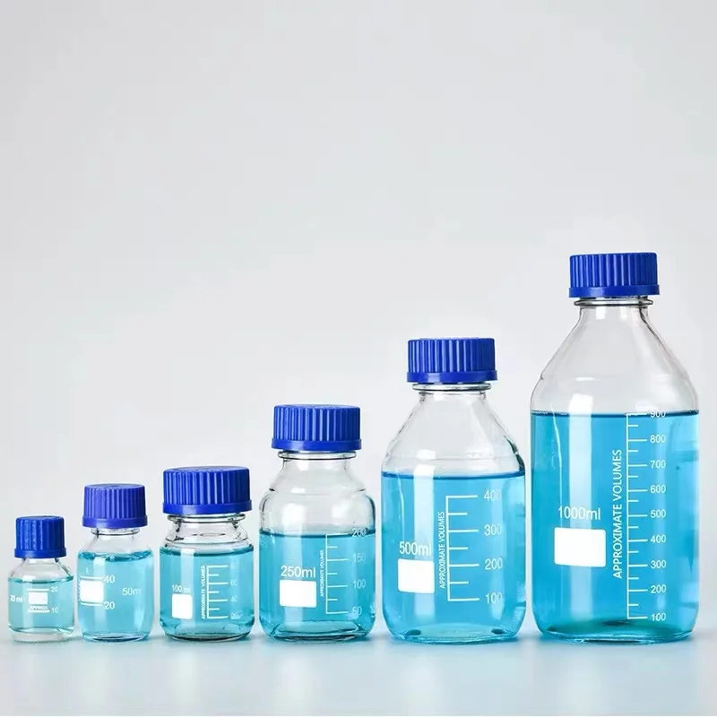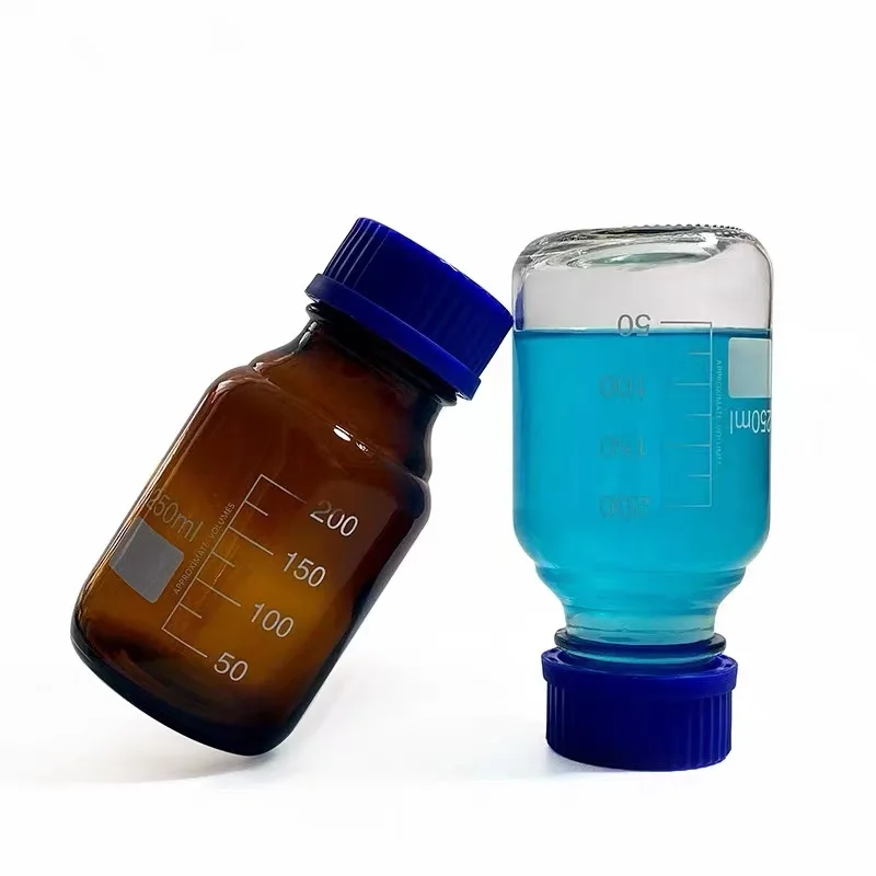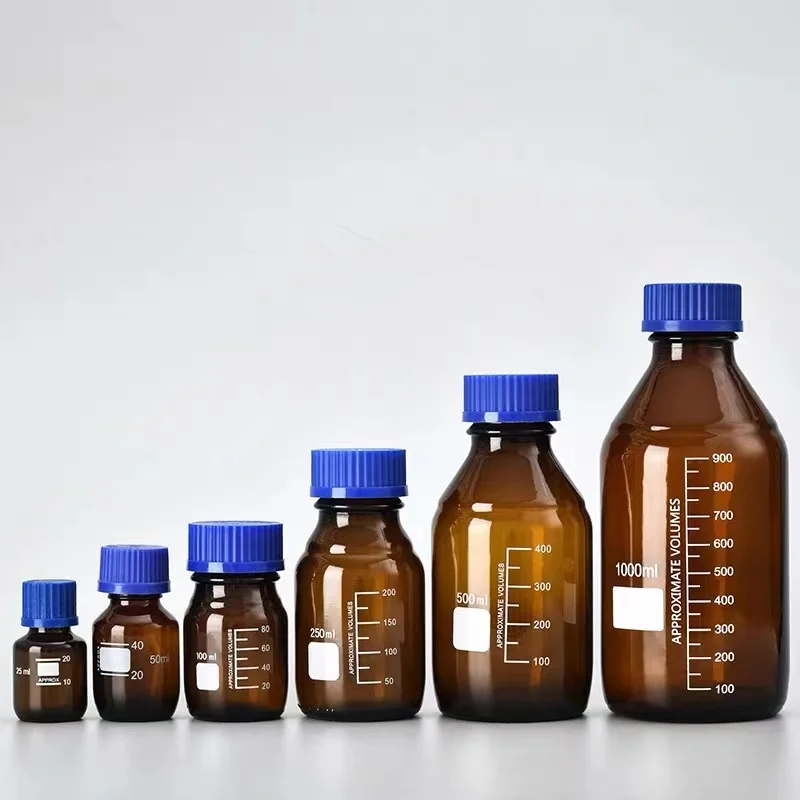 25ml, 50ml, 100ml, 250ml, 500ml, 1000ml reagent bottle; Amber and clear reagent bottle are available. Different volume reagent bottle used different package type; 100ml reagent bottle 120pcs/carton 250ml reagent bottle 80pcs/carton 500ml reagent bottle 48pcs/carton 1000ml reagent bottle 24pcs/carton Silk mouth reagent bottles, also known as sampling bottles, purification bottles, sample bottles, sterile bottles, clean bottles, filter bottles, filtration bottles, sampling bottles, filter bottles, etc., are essential for contamination detection.)