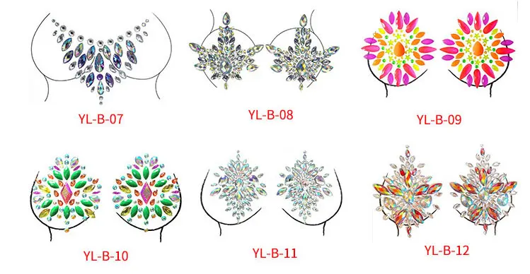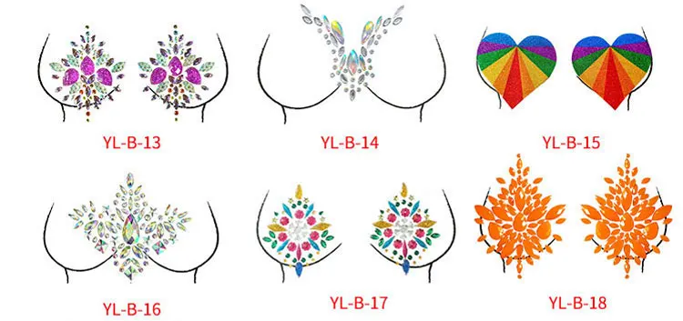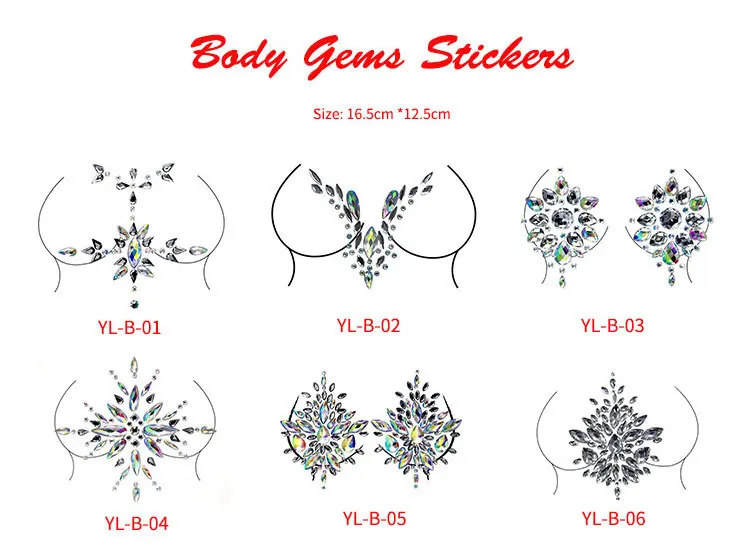 Proudct name: | Lower price Acrylic Eco friendly Breast Rhinestone Festival Party Rave chest Jewels Stickers for body decoration |