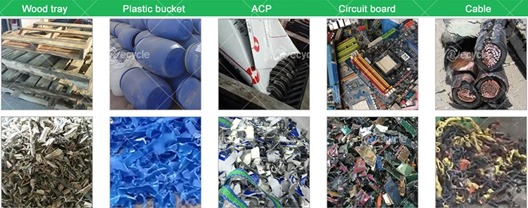 1. Metal: aluminum can bundle, steel drum, car shell, color steel tile, bicycle, copper aluminum radiator, oil filter, scrap wires, cables, aluminum composite plastic panel, steel wire rope, gas tank, iron scrap, zip-top can, engine case, paint bucket, etc.