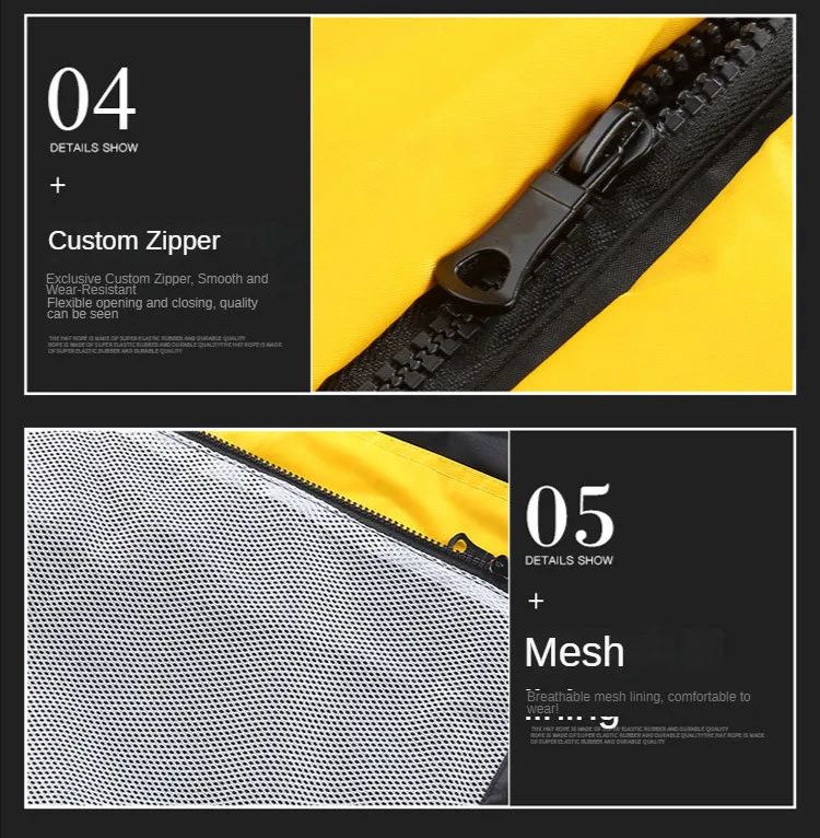 Waterproof zipper and mesh lining