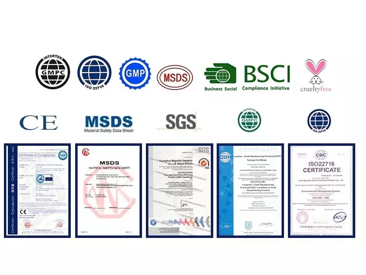 Certification | ISO9001,ISO22716,GMPC,GMP,TUV,SGS,MSDS |