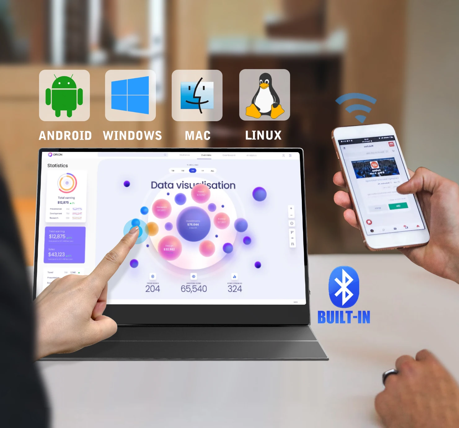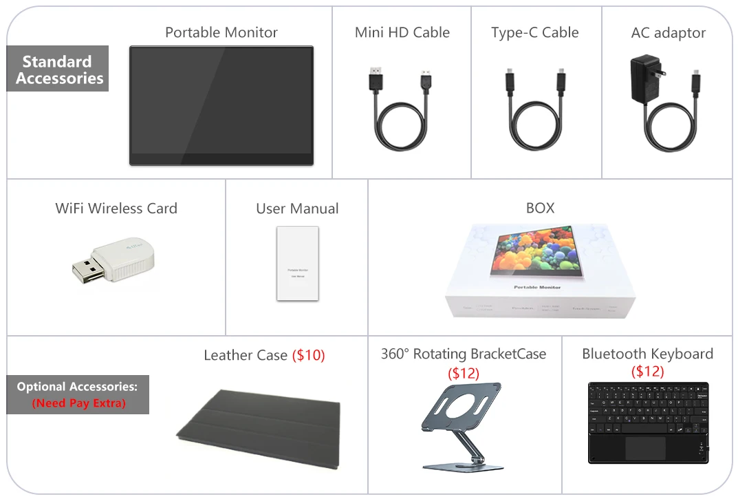 (Note: This portable monitor has touch function, NO built-in battery.)