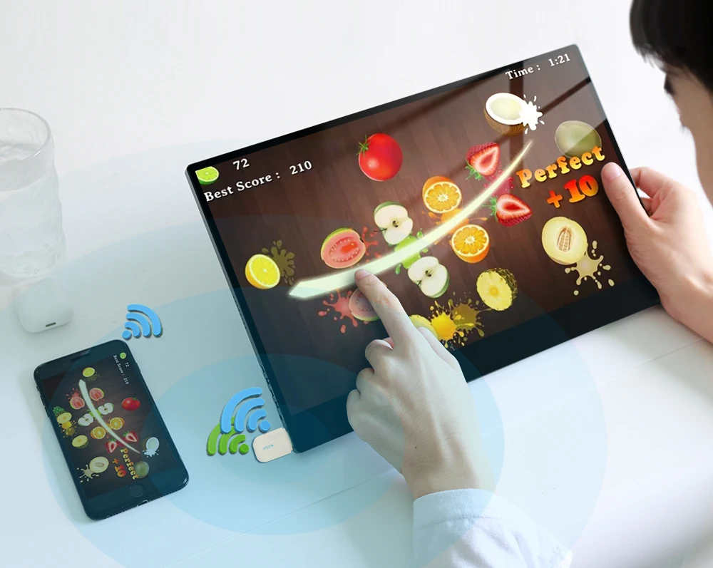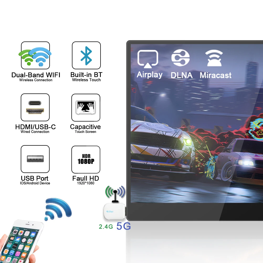 (Note: Wireless distance ≤5 m.)Wifi Wireless Miracast 16 inch Lcd Monitor Touch Screen IPS 1080P 4K Dual Portable Touch gaming 15.6 inch Monitor Extension for Laptop Smartphone
