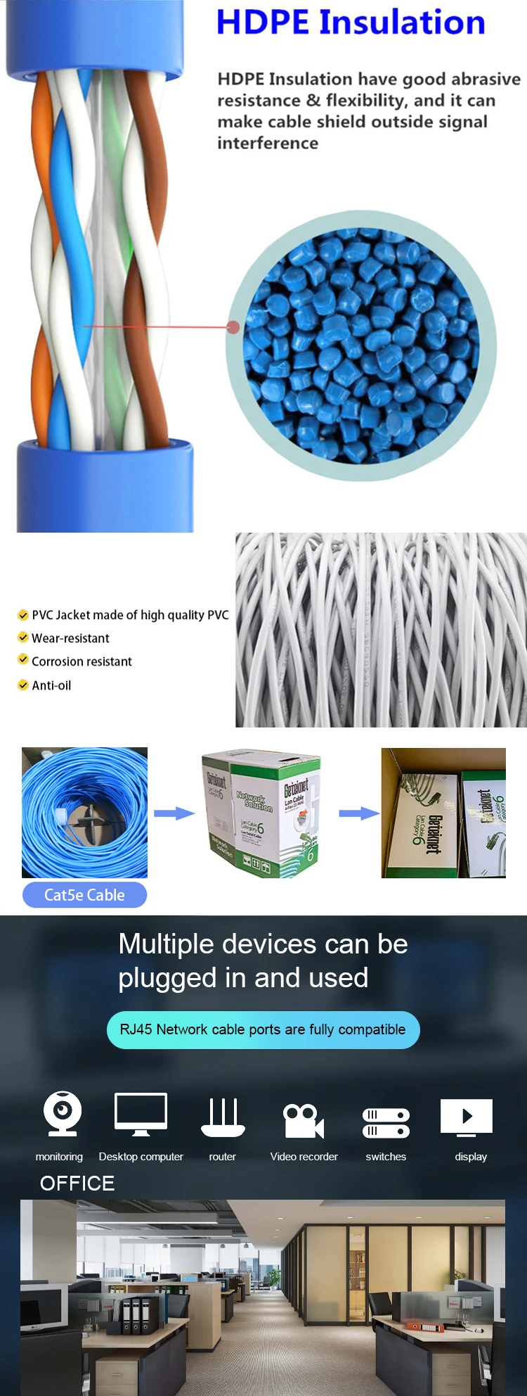 Unshielded UTP cat 5e network cable 1000FT 305M 100M lan cable 4pair twisted OFC pure Copper ethernet network cable