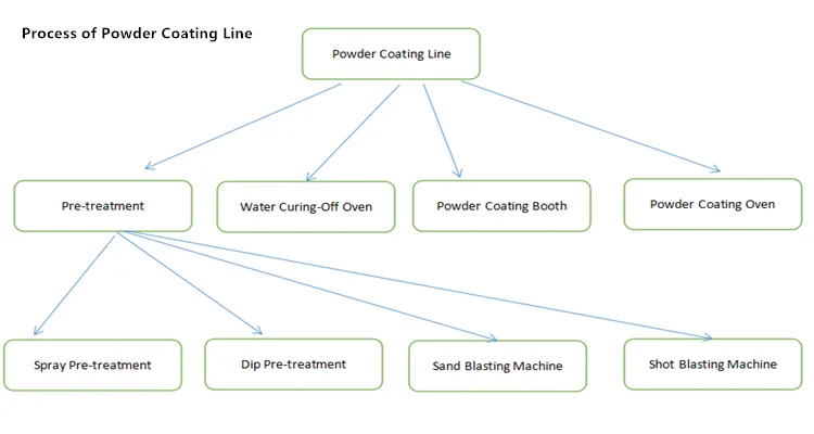 Manual powder coating line or automatic powder coating line.
