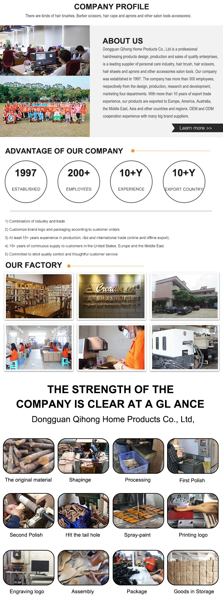 our factory established in year 1997, have more than 20 years experience in making all kinds of hair brushes, combs and other hairdressing products.