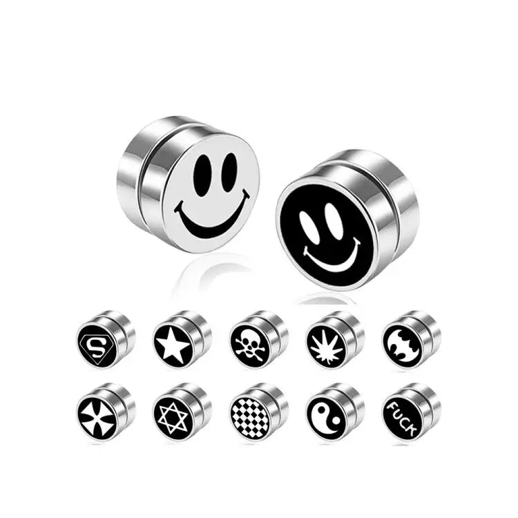 Energinox 27 Designs Personalized No Piercing Hypoallergenic 316L Stainless Steel Hiphop Mens Magnetic Earrings Studs