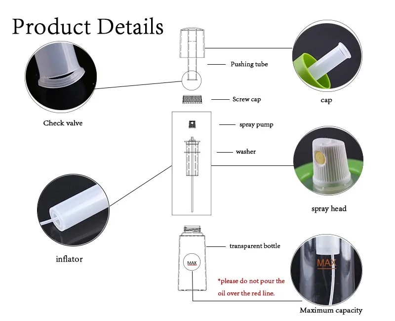 Usage | Olive oil, BBQ cooking oil Sprayer | ||||