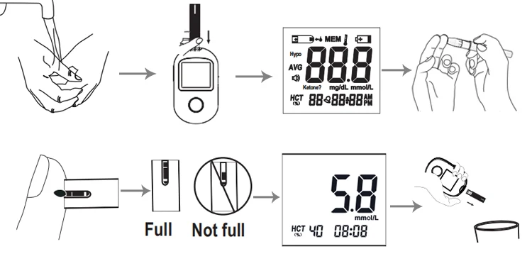 Measurement Range | 0.5- 33.3 mmol/L (9-600mg/dL) | |