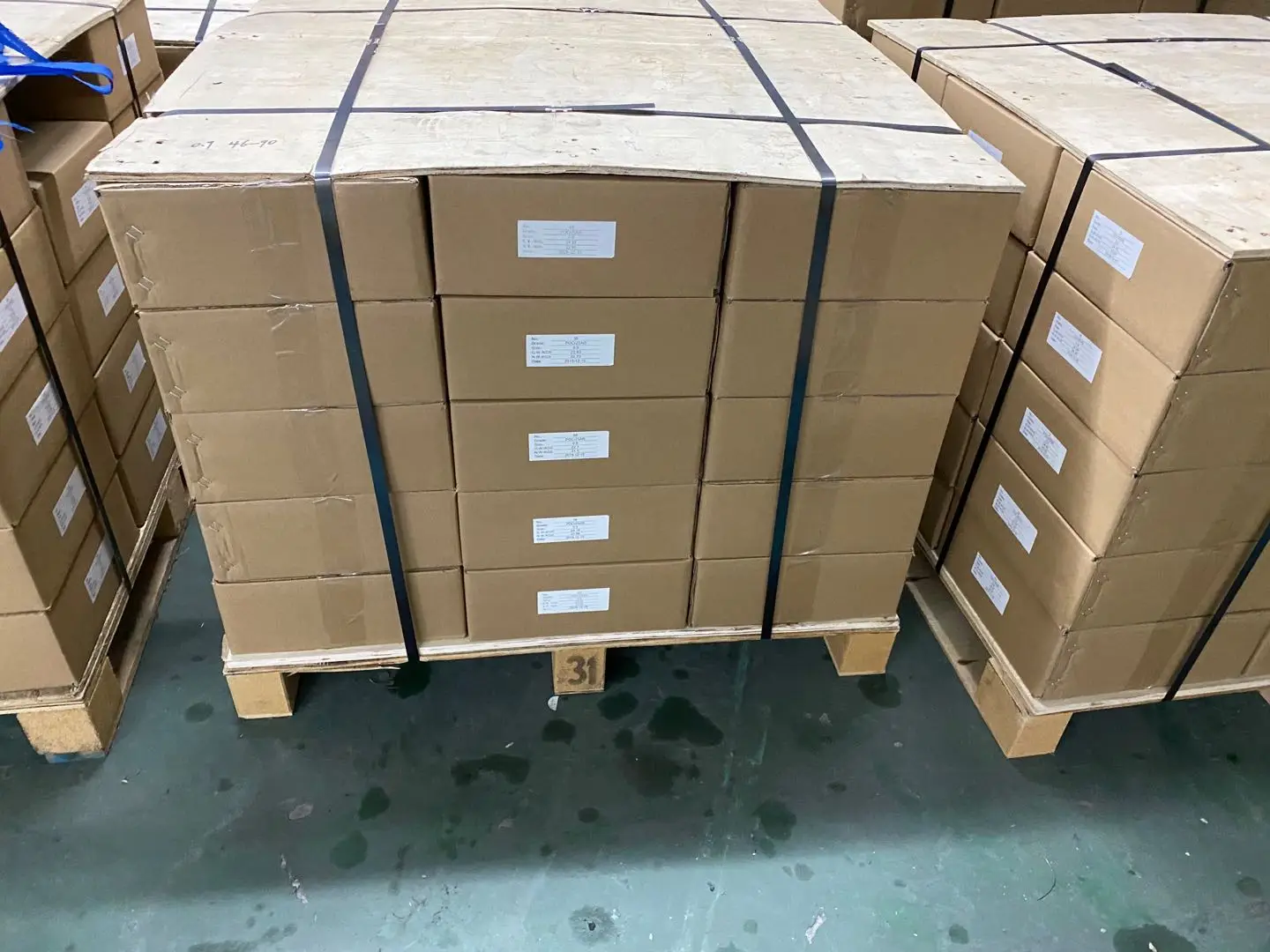 Products of spool wire or ribbon are packed with plastic film, standard cardboard boxes,into pallets and wooden case