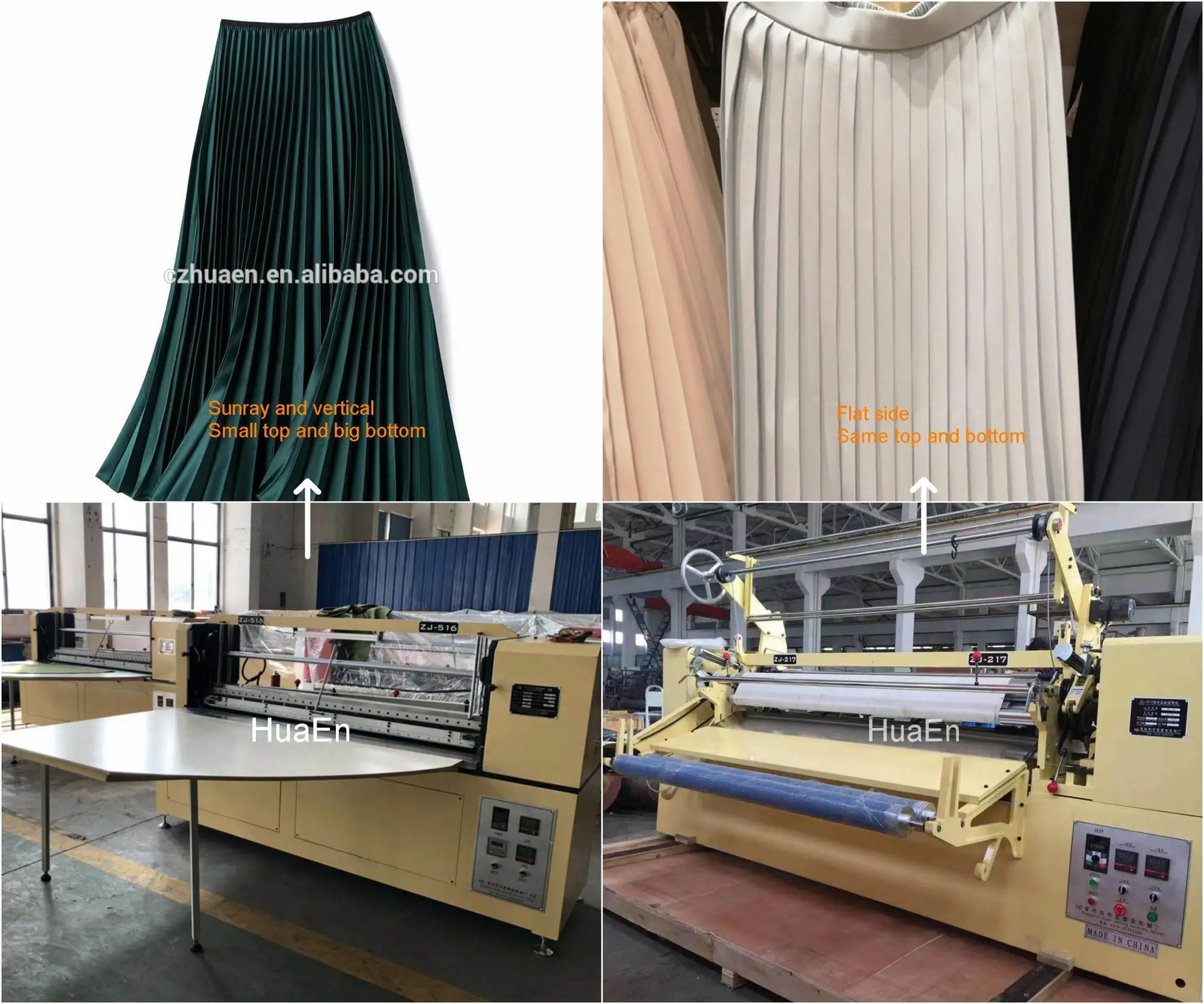ZJ-516 machine pleating skirt is for sunray and accordion with computer control. Yellow is machine without computer and Red is machine with computer.