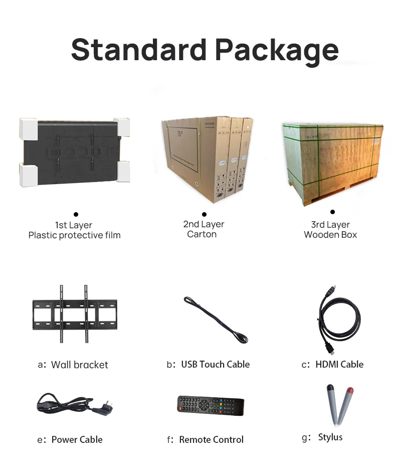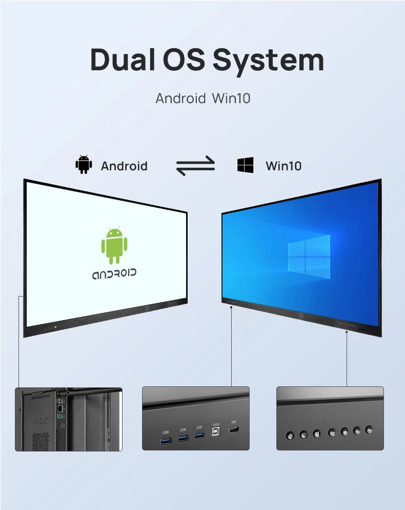 Interface | RJ45 IN,USB,TOUCH USB,VGA INPUT,PC AUDIO INPUT,MIN AV OUT,MIN AV INPUT,Ypbpr,EARPHONE OUTPUT,COAX,RS232,TF card,WI-FI,WindowsOPS Slot | ||||