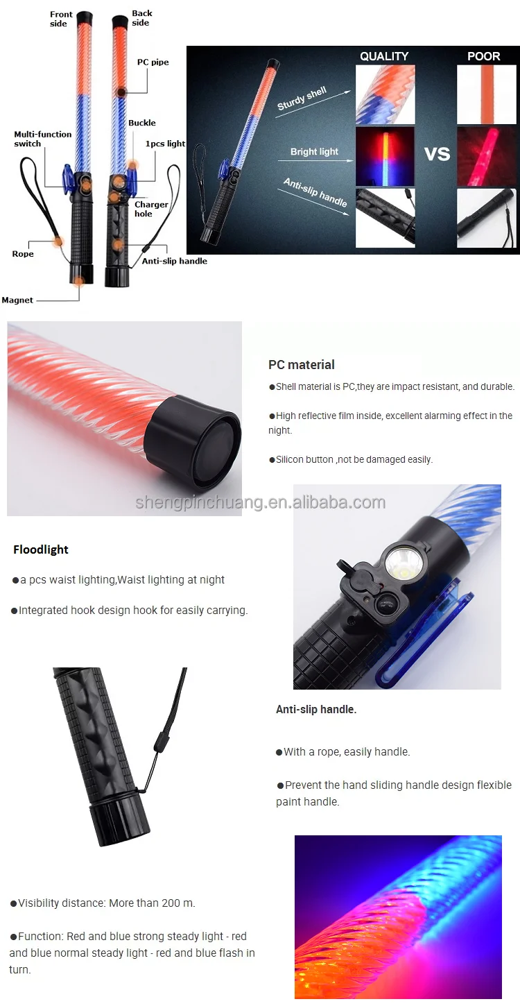 High quality handheld Led red blue flashing warning self defense strobe light signal wand emergency safety traffic batons