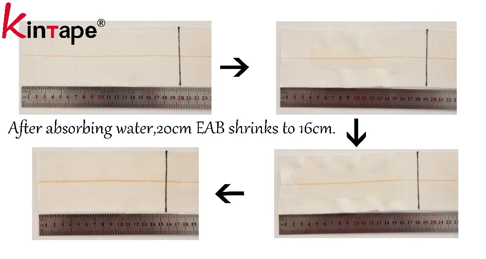 EAB is made of 100% cotton which allows it shrink a lot when absorbs water, so it can be used as emergency bandage to stop blood.