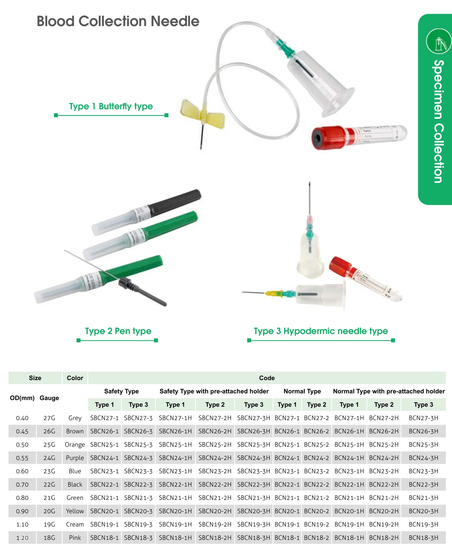 Type | Type 1 Safety butterfly type Type 2 Safety needle type Type 3 Safety pen type |