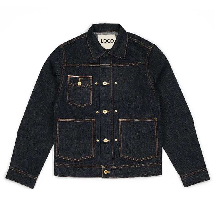 Male Vintage Heavy Washed Streetwear Boy Motorcycle Dark Blue Cowboy Coat Denim Jacket for Men