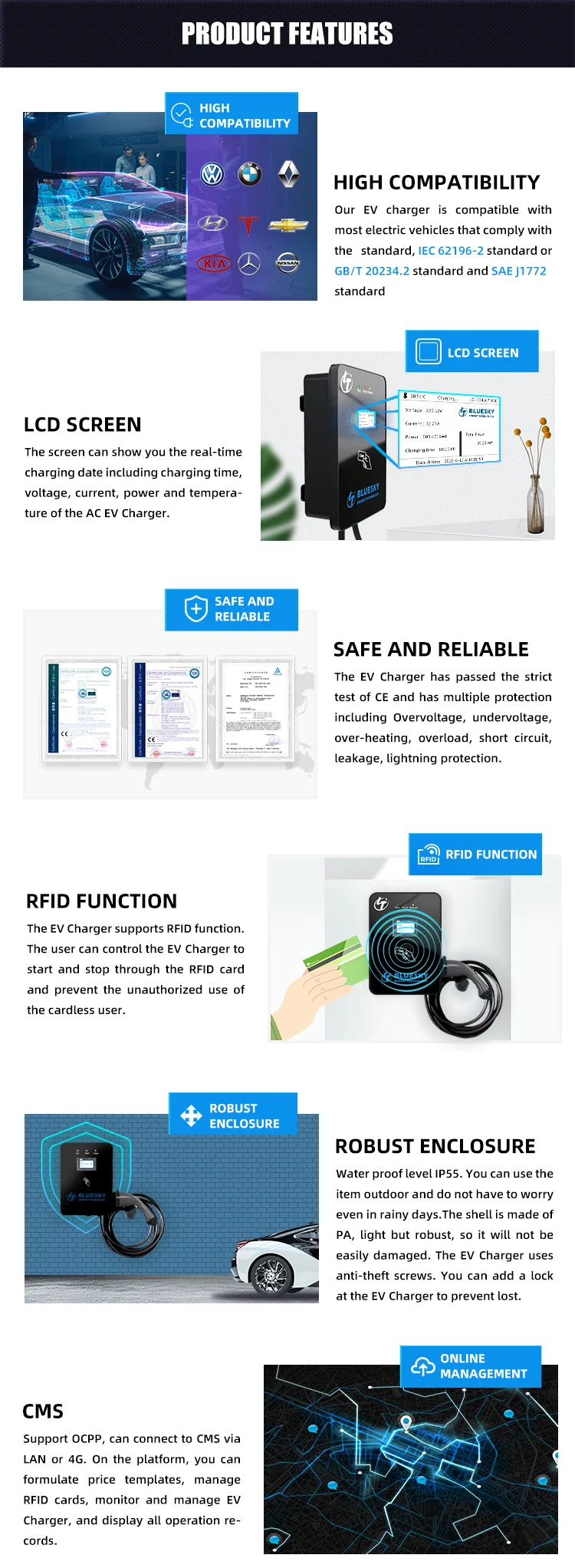 RCD | Type A(Optional) | Control | Plug&charge,RFID,APP | |||