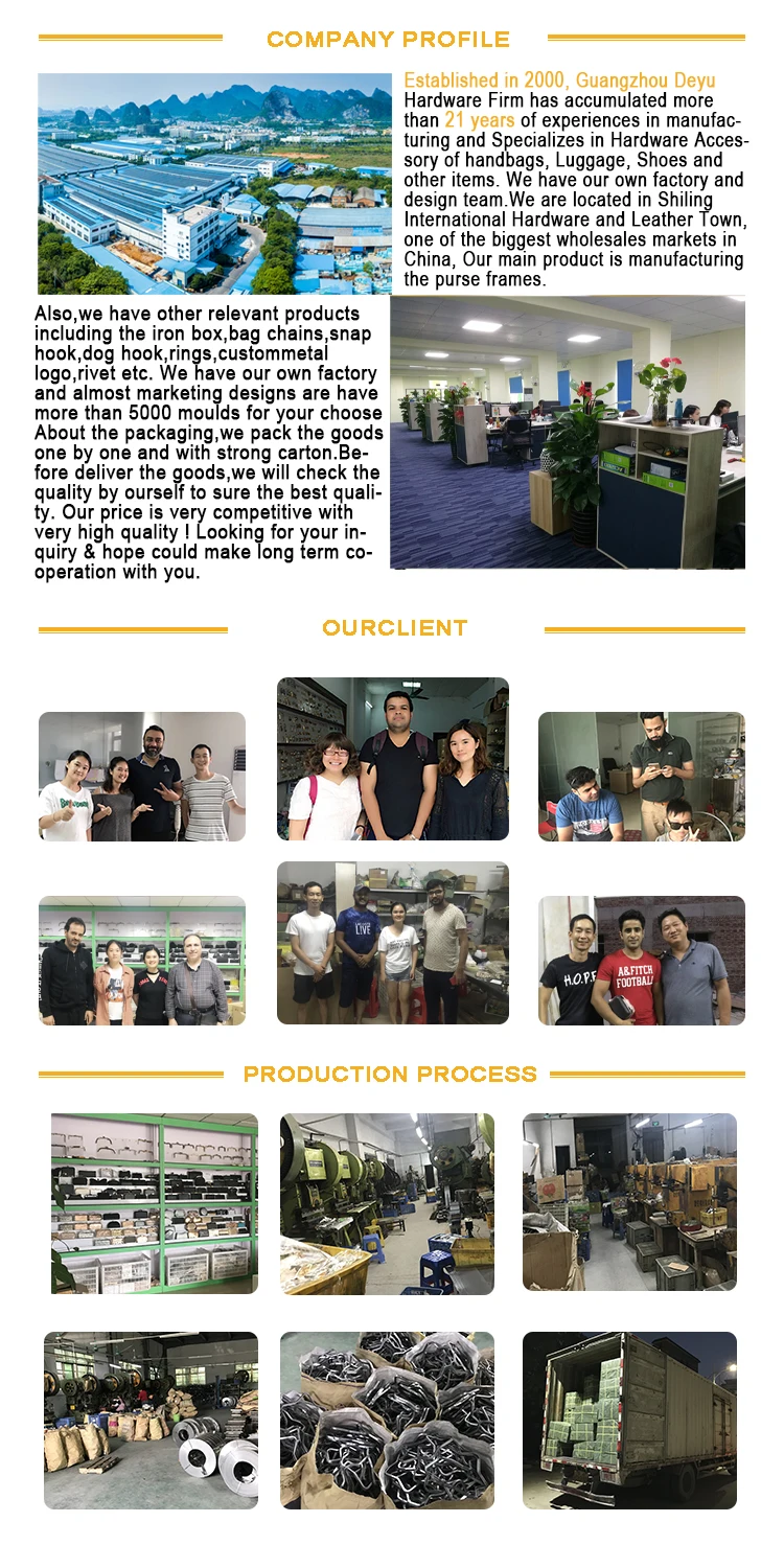 GuangZhou De Yu Hardware is a manufacturer and supplier of Bag hardware accessories in China, Specializing in Bag Lock, Magnetic button ,Belt Buckle , Snap Hook , Bag Ring and other bag accessories .