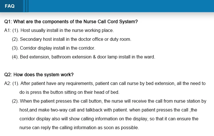System overview Adopt new technology research and development to provide cost-effective solutions.Based on the price of traditional panel plug-in callers, the hybrid communication transmission technology is adopted, without the need of server configuration, convenient networking, high-definition intercom, which effectively improves the overall system function and brings intelligent medical intercom service.The nurse host is in the terminal hub position.It adopts Android intelligent operating system, supports app expansion function, and is responsible for data and communication processing of the whole system.