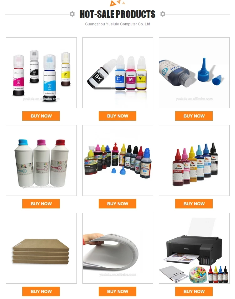Guangzhou Yuelule Computer Co. Ltd. is a professional sales of printers and printing consumables company, and a number of domestic large-scale consumable manufacturers have established a close cooperative relationship. The company operates Ep son Printer, Alternative Ghost Ink, Hongcai 6 Ink, Baidu West Ink, Magnesium Brand Ink, Hot Transfer Paper, Print Photo Paper; Hot transfer ink, hot transfer printer, food printer, coffee printer food ink, food ink, Ep son original ink, selenium drum, ribbon and other computer peripheral products. Based on the more than ten years of South China market, the company has won a good corporate reputation and has a large number of high-quality fixed customers. We have a high-quality marketing team that has the courage to develop teamwork, flexible and effective management methods, and uphold "to strive for survival. With the business concept of "reputation for development" and the principle of "honest management, mutual benefit, and common development", we guarantee that the shopping experience is easy and pleasant. We provide professional quality after-sales service and problem solutions to customers. If you are interested in any of our products or would like to discuss a custom order, please feel free to contact us. Thank you for visiting the website.