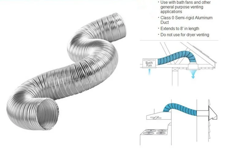 Aluminum semi flexible air ducts are flexible, extendable and highly reliable for low and medium pressure air conditioning, ventilation, boiler systems and chimney liners.Semi is elastic, flexible and stretchable.Oval and circular connectors are easily installed.