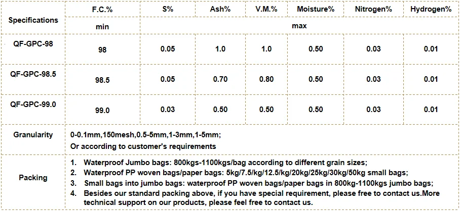 Graphite petroleum Recarburizer Graphite petroleum coke-GPC is made from low sulfur and low nitrogen petroleum coke by 2500-3500°C temperature graphite annealing.As a highpurity carbon material, it has characteristics of high fixed carbon content,low ash,low sulfur,low resitance etc. GPC can be used as carbon raiser (Recarburizer) to produce high quality steel,cast iron and alloy.