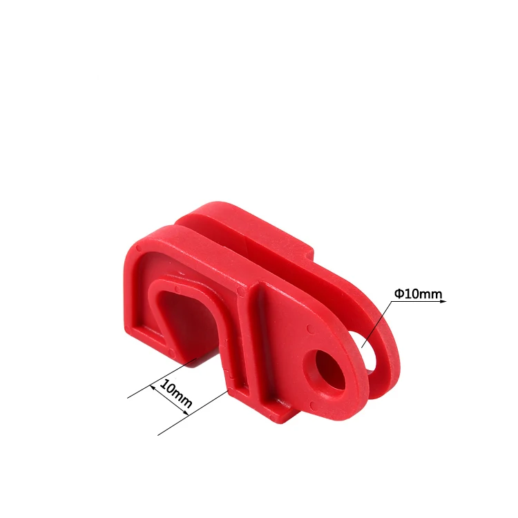 c) Fits on breaker toggles and can be tightened without tools.