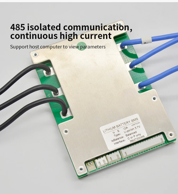 JBD-SP15S008C is designed by Dongguan jiabaida Electronic Technology Co., Ltd. It is an intelligent protection board scheme specially designed for 15 series battery packs of power battery, electric bicycle, electric motorcycle, etc. It is suitable for lithium batteries with different chemical properties, such as lithium ion, lithium polymer, lithium iron phosphate, etc.The protection board has strong load carrying capacity and the maximum continuous discharge current can reach 120A. ● 15 cell series protection
