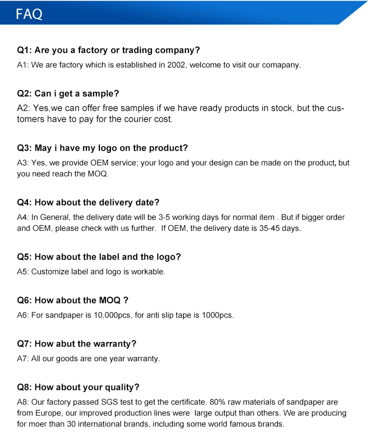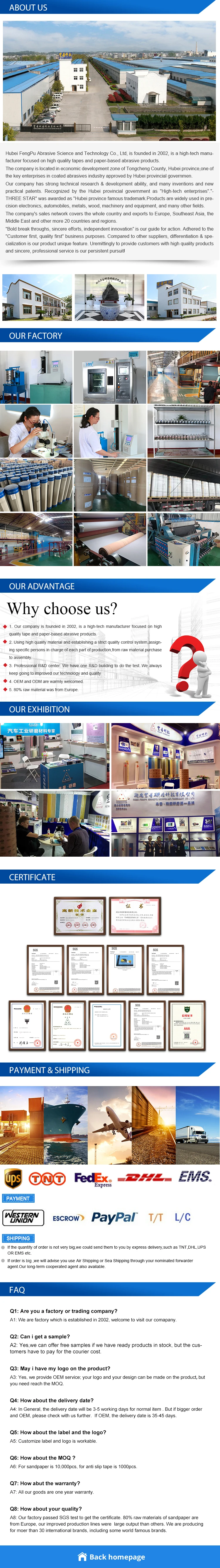 High quality, long endurance, with tough and flexible backing, top-coated to prevent clogging, for grinding wood, furniture, paint, metal and aluminium alloy.