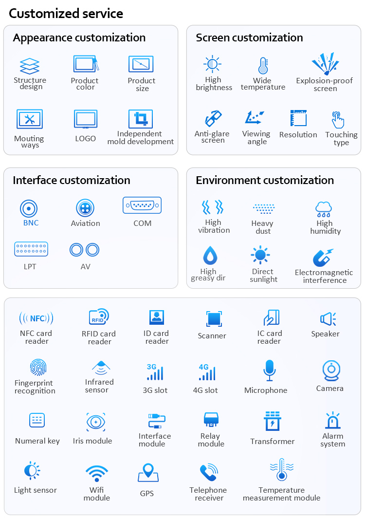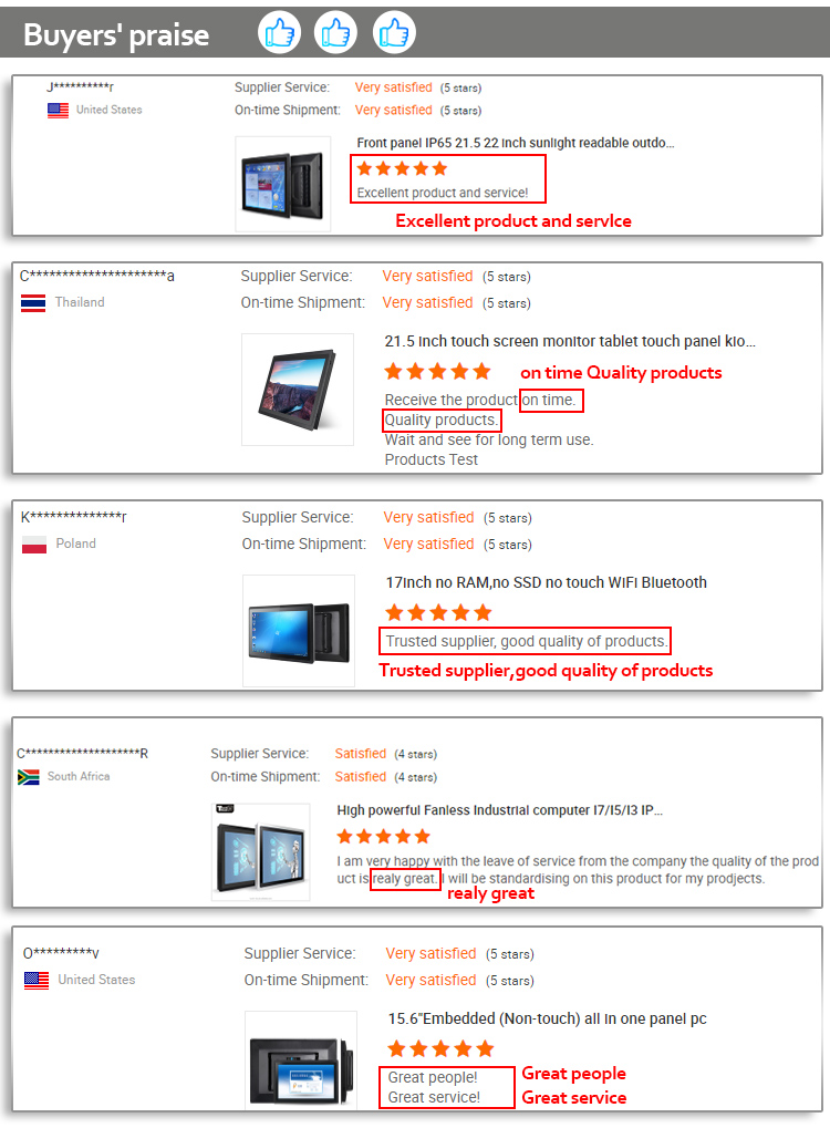 a. Rich product lines such as industrial touch screen monitor, Industrial All-in-one Panel PC, Industrial Android All-in-one PC,industrial boards, and mini pc,customized PC,etc. |