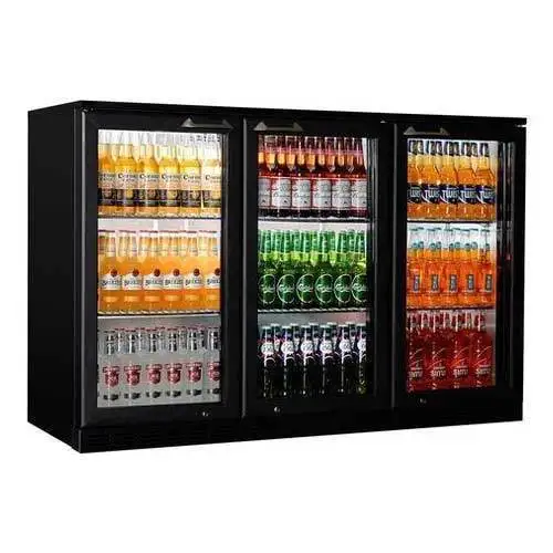 Supertise Black Hinge Swing 3 Doors Bottle Beer Fridge Display Refrigerator Glass Drink Back Bar Cooler
