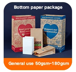 Material | Brown Kraft Paper, White Kraft Paper, Art Paper, Ivory Board, Duplex Board, Specialty Paper, or Custom Paper. | ||||||