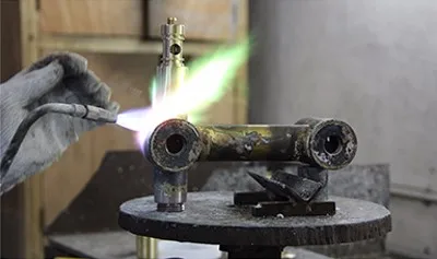 Currently still a raw and inconspicuous brass bar,the raw material melts in the furnace at over 1000 degree centigrade,the liquid metal now takes on a recognizable form.All these were done by Gravity Casting Machine.