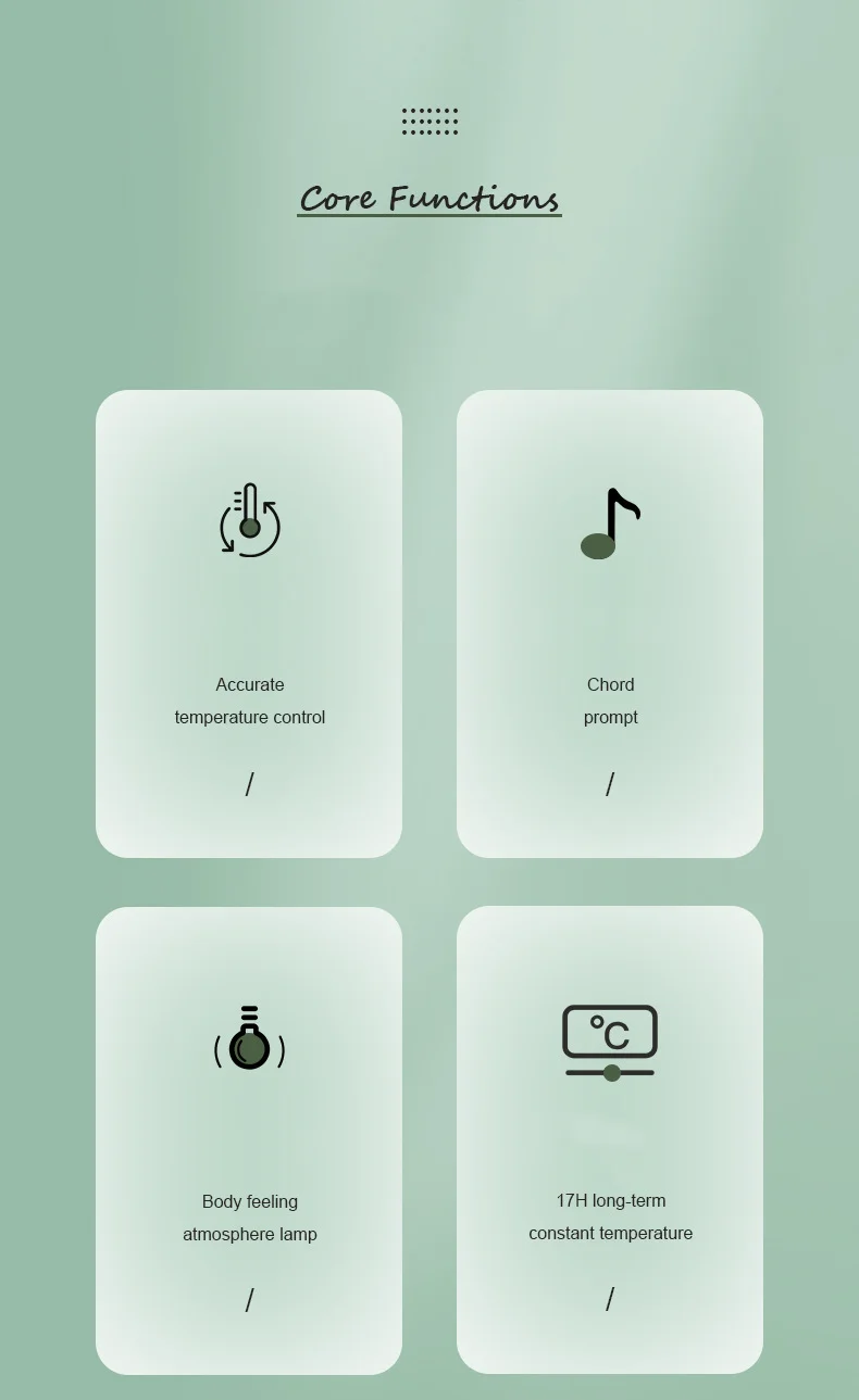 Function | * 316 Stainless steel vacuum chamber * Smart temperature control *Thermostatic threshold setting:37°C-55°C * Support boostcharge in 3.5hrs * 500ml volume * Prepare Formula for baby * Built-in 10000mah lithium battery *Heat and warm water *Voice alert *Touch on atmosphere light |