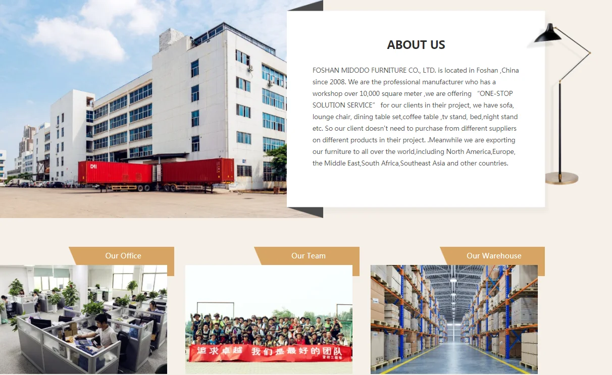 1.Are you trading company or factory?We're a furniture manufacturer who is providing sofa, lounge chair, dining chair, coffee table etc to more than 20 countries all over the world. We can offer one-stop solution for our clients in their different projects. Welcome to send us OEM & ODM orders.