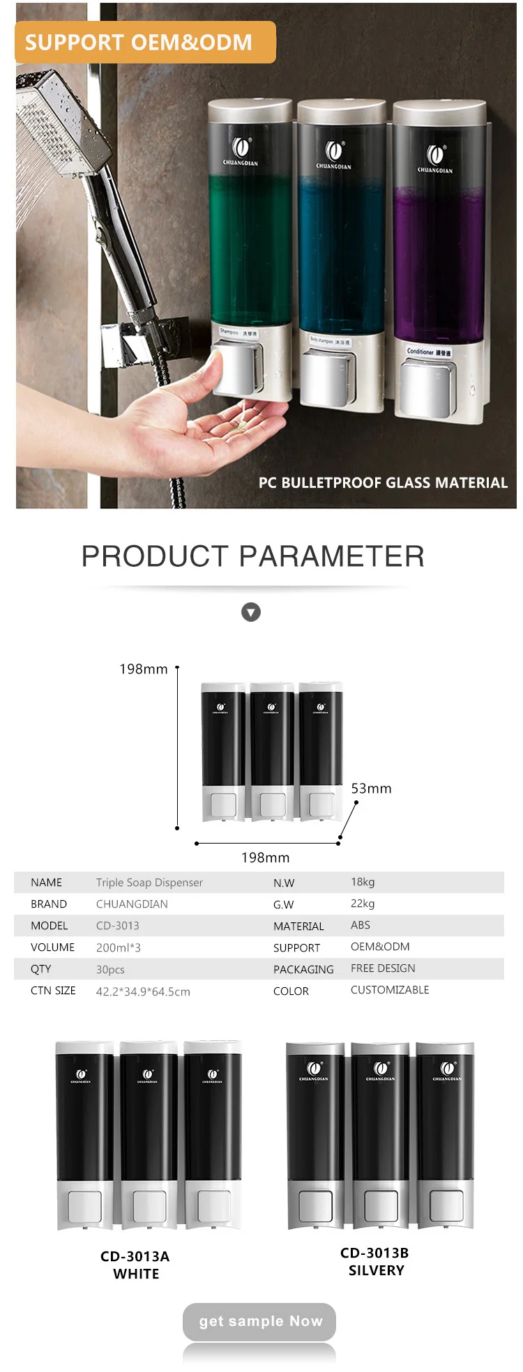 Q2:How can i get a Samples bathroom commercial wall mount liquid hand soap dispenser CD-3013 ?