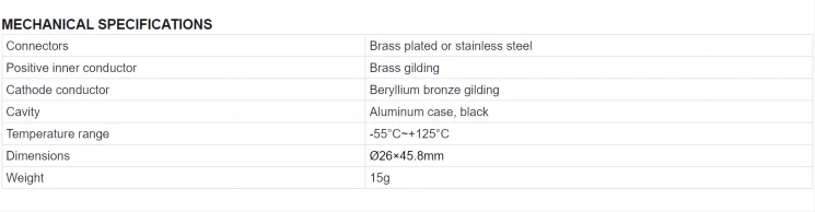 3.5TS10 coaxial fixed attenuator average power 2-50W, frequency range DC-26.5GHz. It has the following characteristics: