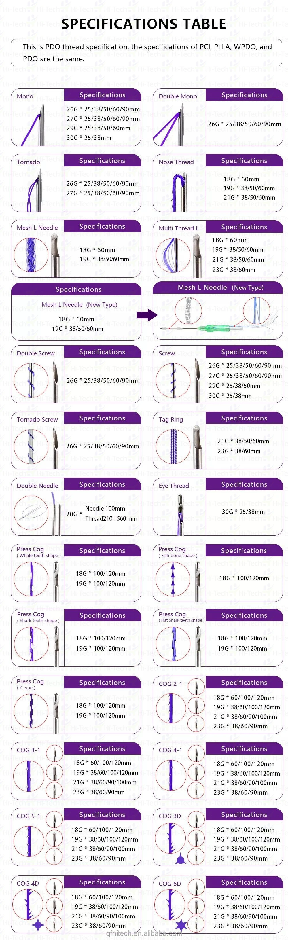 Thread Size | PDO/PCL/PLLA THREAD USP 1/0,2/0,3/0,5/0,6/0,7/0 |