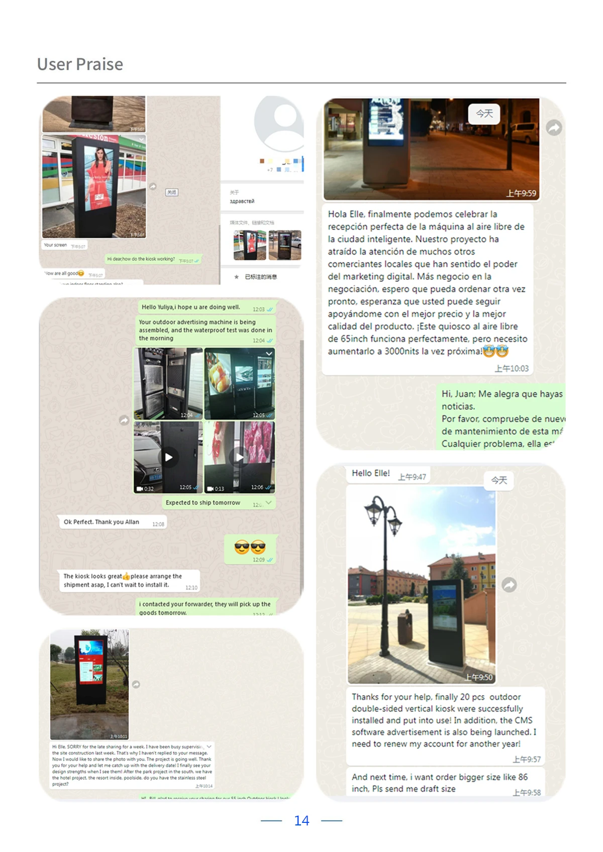 12. Sufficient performance verification, screen outdoor aging screening, high and low temperature of the whole machine (-20 degrees to), user-use solar radiation simulation, shell size detection, paint coating adhesion test, EMC test (provide test report documents), high-pressure spray shower test